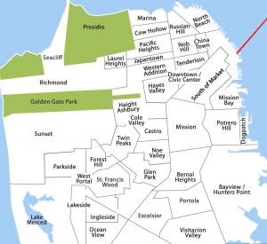 It is easily navigated from within San Francisco neighborhoods of the Mission, NOPA, Haight, Hayes Valley, Noe Valley, Downtown, Glen Park, as well as from across town, and other parts of the greater San Francisco Bay Area